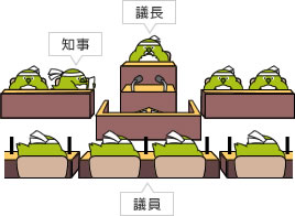 議案について賛成か反対かを出席議員の過半数(かはんすう)で決めるよ。(学校をつくるなどの大事なことは3分の2以上、4分の3以上で決めることもあるよ。)