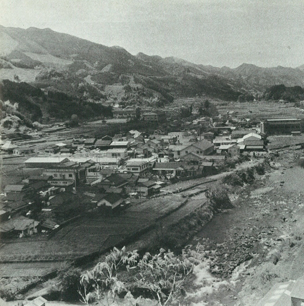 昭和46年3月から中津市山国町では新しい町政が始まった。選ばれた新首長によって、こま切れながら道路改良舗装10件、橋3か所、農道4本ができた。47年度は町予算の27パーセントが「道づくり」に投入された。遠方には大石峠が見える。
