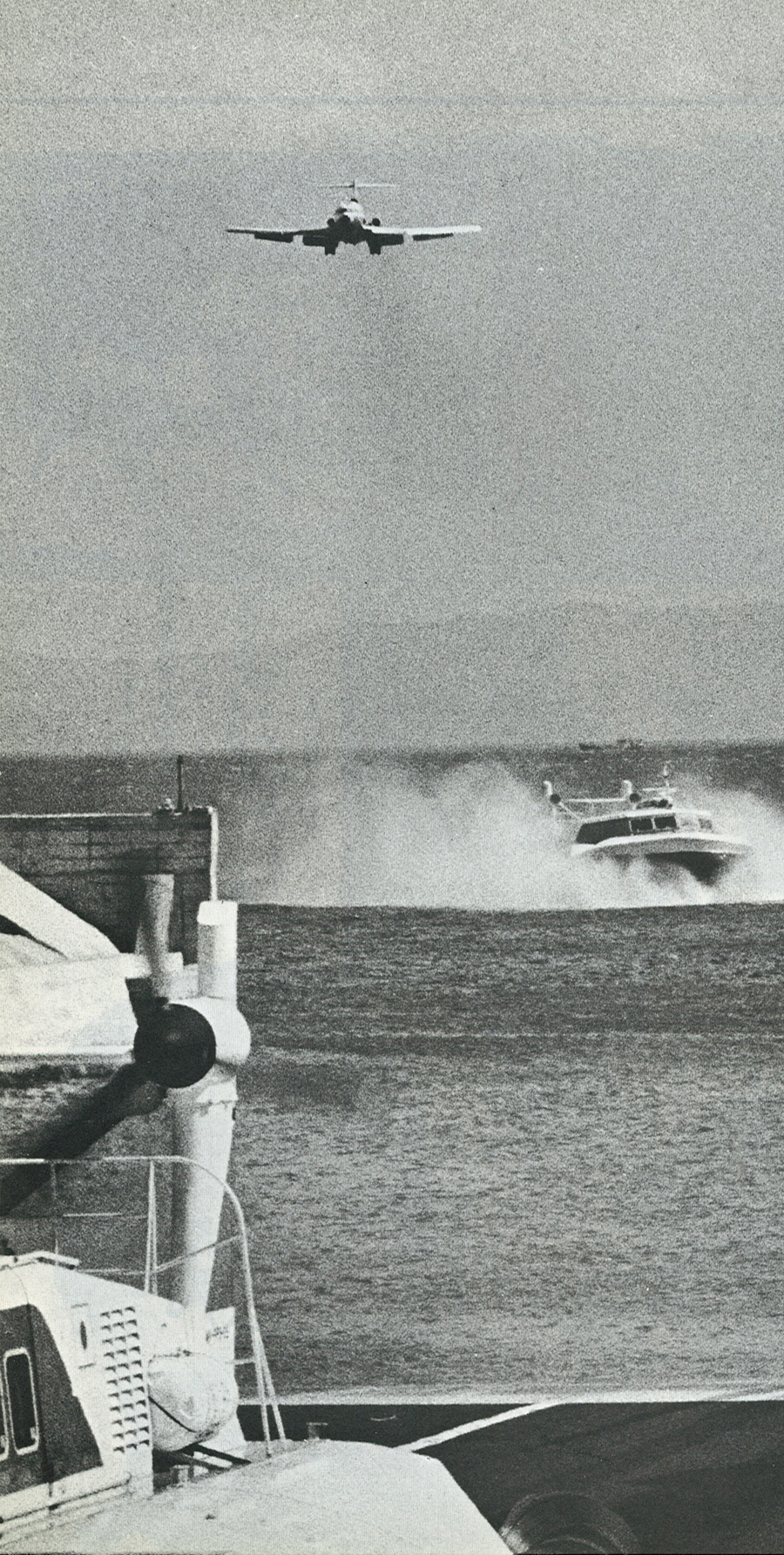 白砂蒼松で美しい国東半島の海浜に、かつては漁船のただよった海も、当時、近代的なジェット旅客機が白煙を引いて離着陸するようになった。日に15回の飛行機便ごとに、ホバークラフトが海路で連絡した。時速100キロ、高崎山も別府の湯煙も瞬時に走り去った。