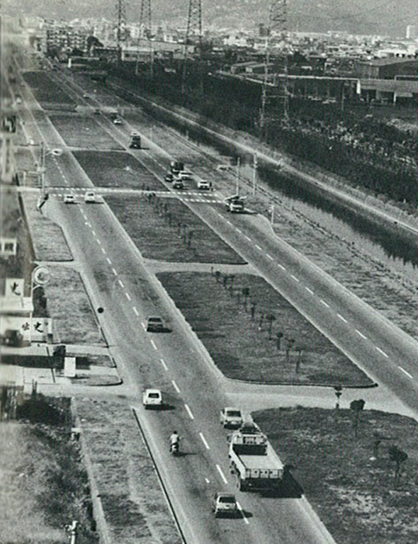 幅員40メートルの臨海産業道路。当時、6,800メートルが整備を終えていた。