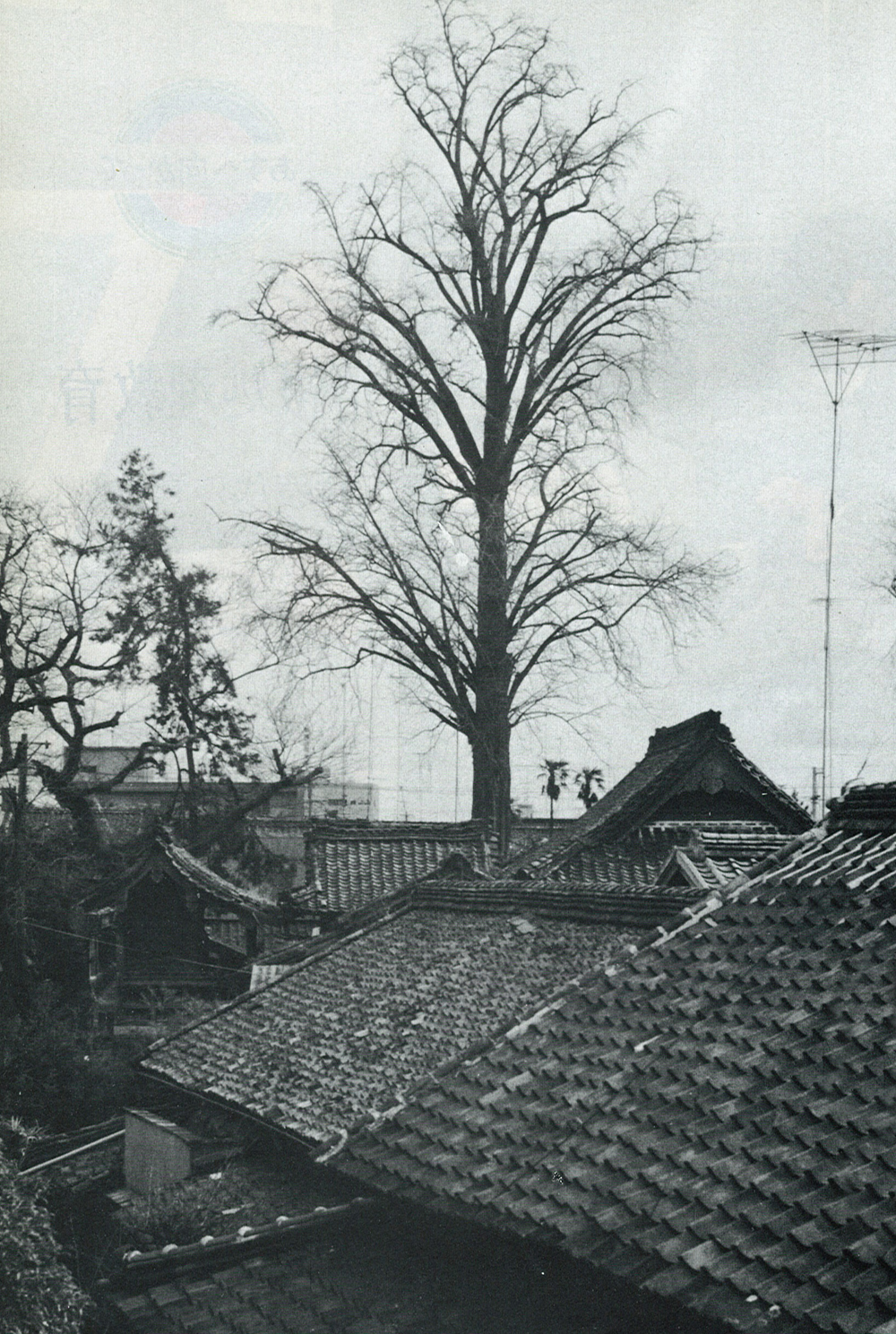 当時の中津市金谷森の丁は、奥平10万石の城下町を忍ばせる静かなたたずまい。その家並みの真ん中から、天を突くように1本のイチョウの木がそびえ立っていた。土地の鎮守さま「森の宮」の境内にある樹齢250年、高さ31メートルの巨木だ。鎮守さまは、幾世代にもわたる里人の心のふるさとである。その境内に緑の木陰をつくり、美しい黄色の落ち葉をふらせてきたイチョウの木は、き然として枝を広げており、金谷一帯のシンボル的存在であった。県指定特別保護樹木。