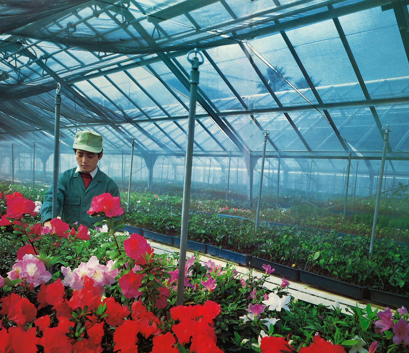ミスト(人工霧)方式とは、当時、県温泉熱利用農業研究所(別府市)で研究が進めてられていた新しい苗木増殖の方法であった。一定時間の間隔をおいて人工霧がたちこめる。昭和43年からはじめられ、県内10数ヶ所の苗木生産者がこの方法をとり入れた。