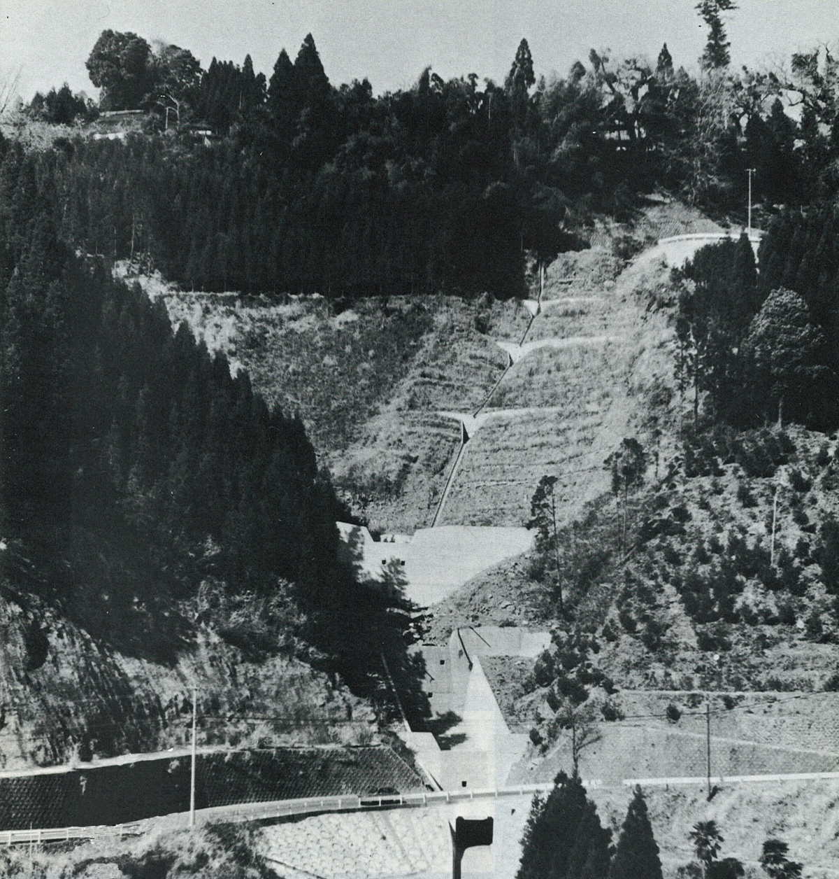 昭和47年7月、日田地方を襲った集中豪雨は、日田市今泉、夕田地区で山腹を崩壊、日田市大山町坊主石で60トン近い石が国道に落ちるなど、多くの被害をもたらした。直接人命に被害がなかったとはいえ、二次災害を防ぐため、すぐに緊急治山工事が行われた。当時、坊主石はまだ工事中であったが、日田市今泉、夕田をはじめ、日田市中津江村下二又の県道ぞいの谷止め、土止め工事が終わり、がけ上やがけ下に住む人びと、道行く車、田畑の安全を守った。