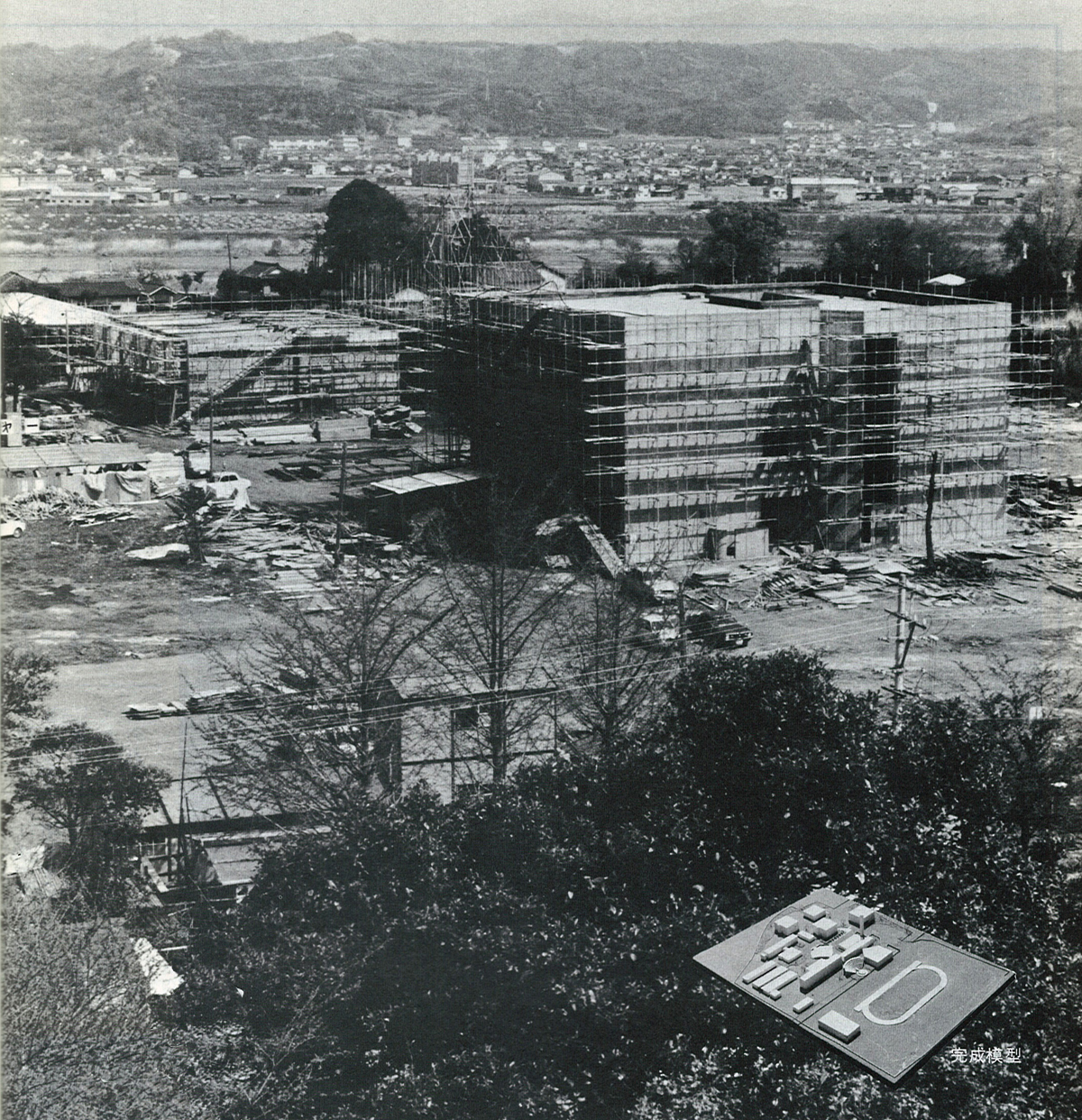 当時の県立芸術短大は、昭和50年4月の移転開学を目指し、一期工事の約50パーセントを終えたところであった。