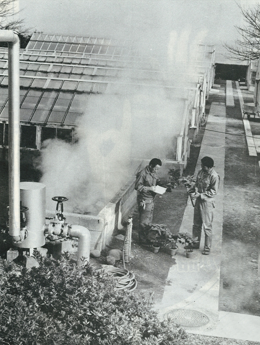 別府といえば“温泉と地獄”の街として世界的に知られている。当時、その豊かな温泉熱を利用して農業生産の研究をする県温泉熱利用農業研究所が別府市鶴見区にあった。観賞価値の高い熱帯植物や優雅な植物を植え、美しい環境をつくるための研究を目的として昭和31年に設立された。