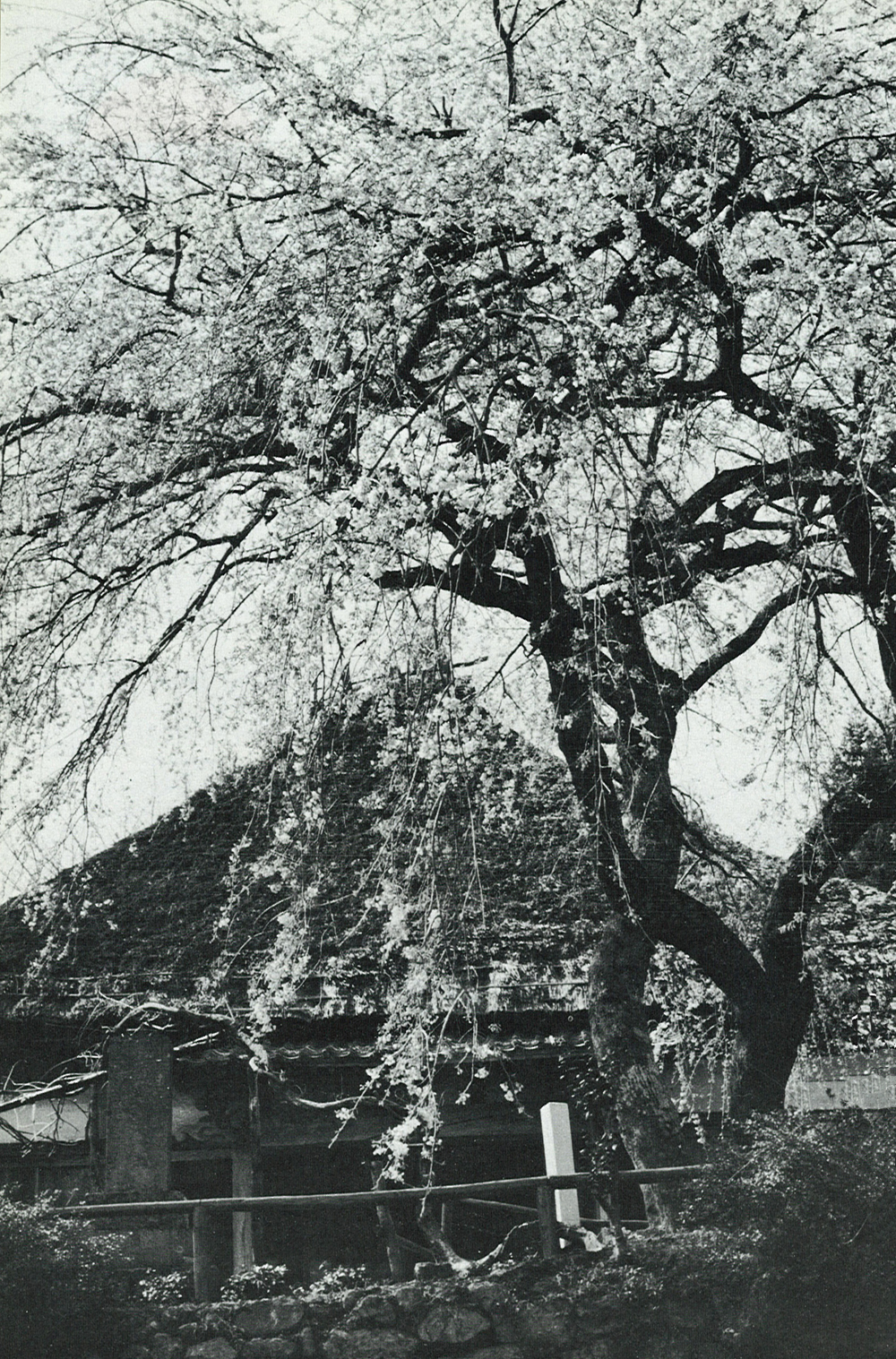 花見客でにぎわう城島高原のすぐ下、静かなたたずまいの城島部落にあるわらぶきの小さなお寺。この寺の境内に県内では珍しい株立ち2本、当時、樹齢80年を迎えたシダレザクラがあった。寺には昭和初期まで樹齢300年のシダレザクラがあり、その古木の株から芽を出し、大きくなったのが2本のサクラである。つまり2代目にあたる。毎年のように見事な花を咲かせているという。県指定特別保護樹木。