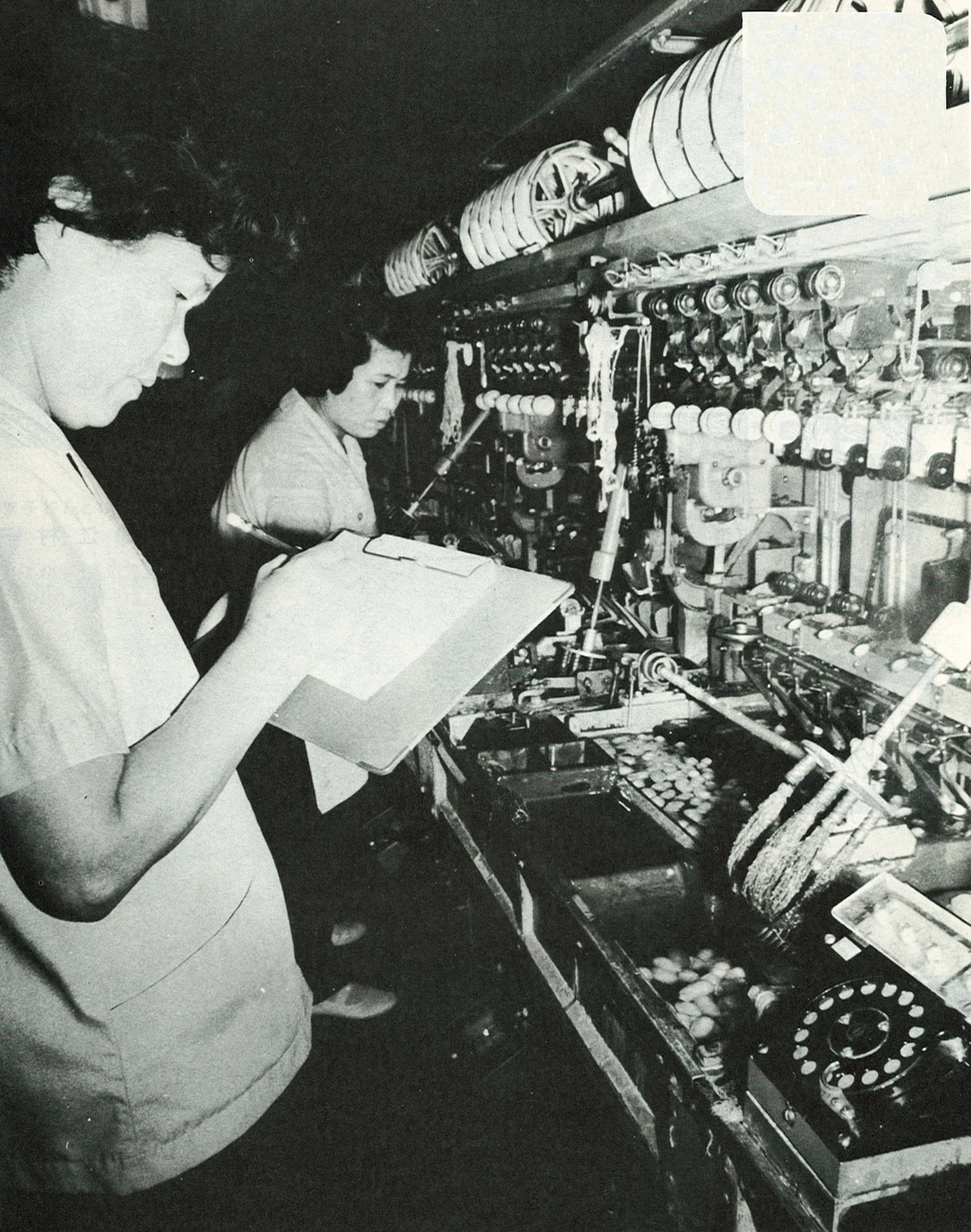 大分市敷戸団地の北に大分県繭検定所があった。煮られた繭の一種独特な臭いのする中で、彼女らは黙々と繰り糸や揚げ返しの作業を続けた。当時、県内での繭生産量は約1,200トン、検定数は830件、この検定で繭の等級が確定すると、取引価格の基準が決まった。