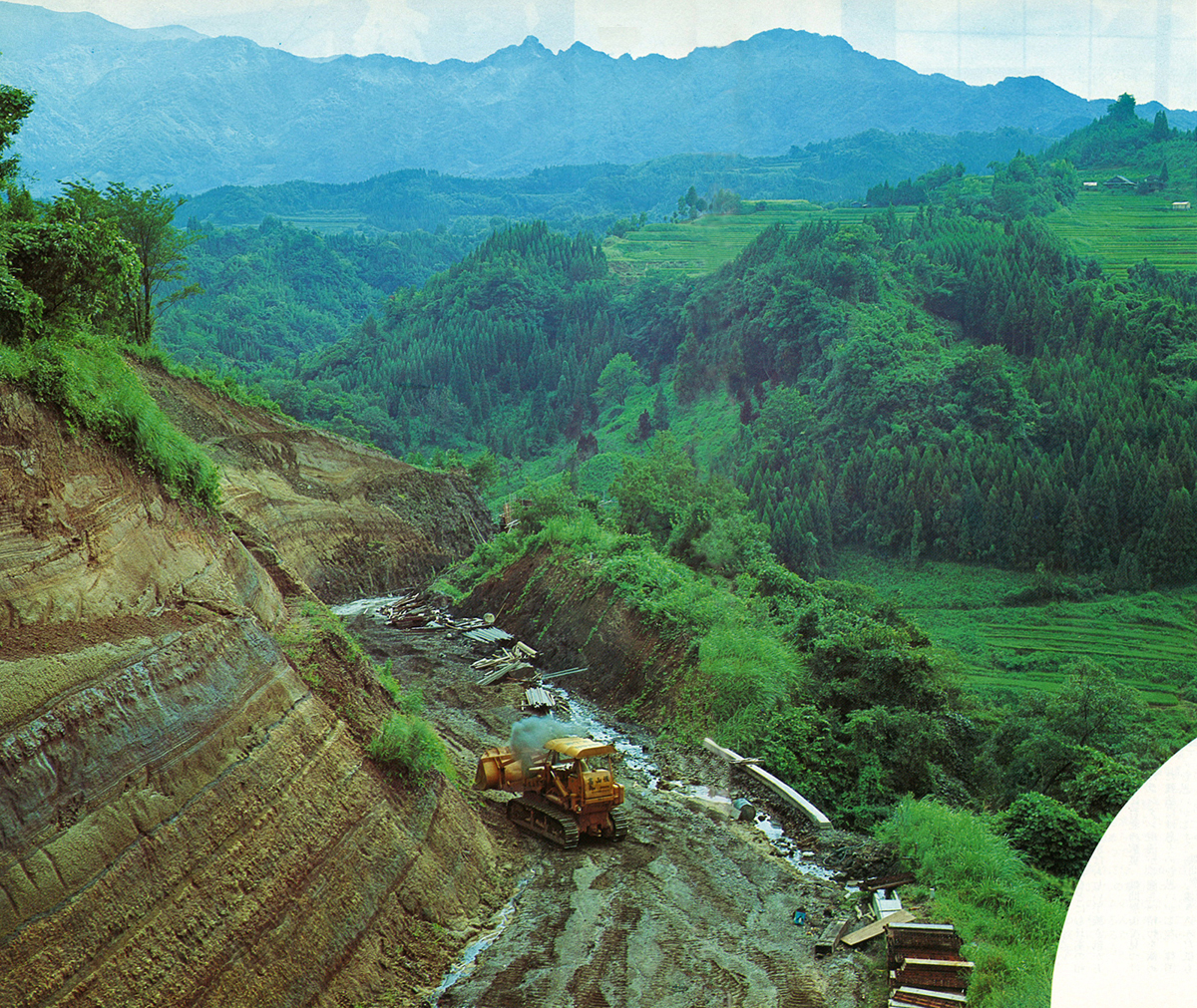 南に祖母・傾の切り立った尾根を望む竹田市荻町柏原台地は、大野川上流の深い谷で竹田市と境をなしている。当時、この谷を挟んで県道九重野・荻線の改良工事が進められ、谷には高さ71メートル、長さ213.6メートルの合ヶ瀬大橋の架橋工事が行われていた。