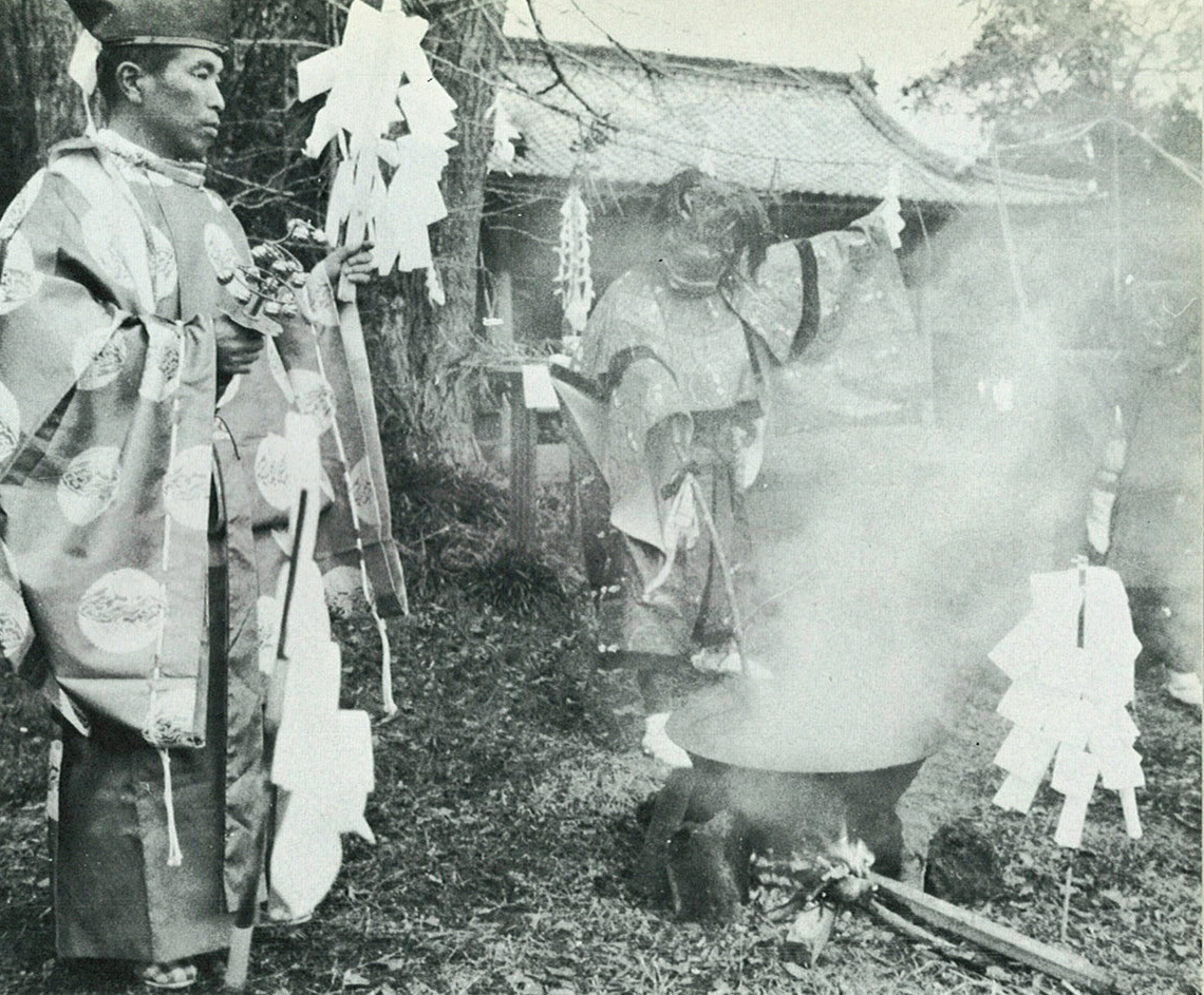 “そもそも御世の始まりとは、いっぱー、まず二つの竜が天降り、何らか口より湯をいだし・・・”という神歌(宣詞)で始まる荻神社の「ゆたて」は、毎年4月26日の例祭で行われ、近郊の市町村からも見物に訪れる人が多く、昭和38年に、県の重要無形文化財に指定された。