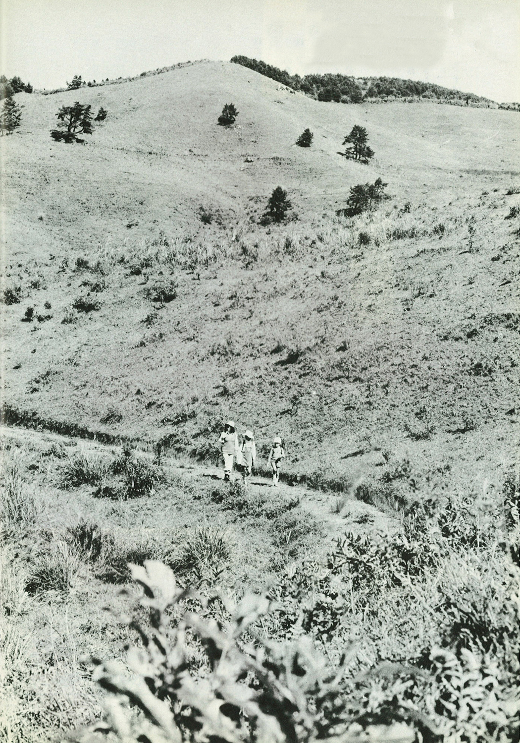 県民の森は、大分市街地の南、霊山(りょうぜん)から野津原・大野・豊後大野市朝地町にまたがる森林地帯4.473ヘクタールの広大なもの。その中に、当時、子どもからお年寄りまでが気軽に楽しめる、いろいろな施設がつくられていた。観光牧場には緑が映え、近くの杵ヶ原には昭和49年に着工記念として植えられた桜園があった。(野津原・豊後大野市大野町境いの四辻峠付近)
