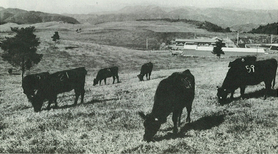 昭和50年、大規模な畜産基地づくりをめざす久住飯田地域農業開発のようす。(玖珠町万年山牧場)