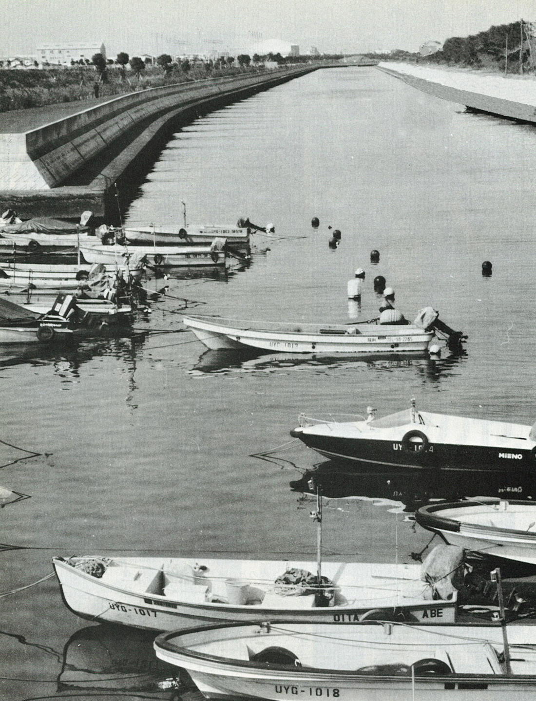 昭和50年、大分川支流「裏川」の改修工事がほぼ完成した。昭和45年度から始められたこの工事は、裏川の川幅を狭くし、埋め立てた土地に、公園や芸術会館、スポーツ施設などを作ろうとするもの。上流の埋立地には県立芸術会館の建設が決まっており、下流そばの旧大分港跡地では大洲総合運動公園の工事が進められていた。河口のふ頭予定地は早くも太公望たちの憩いの場となっていた。