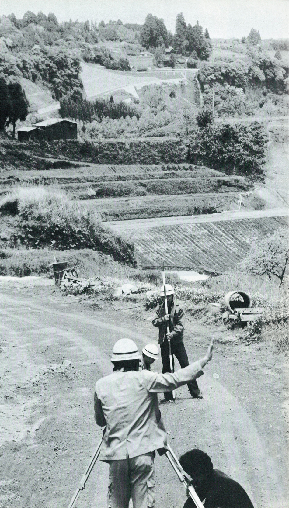 昭和51年、当時行われていた県道九重野・萩線の改良工事のようす。国道57号線と県道竹田・高千穂とを南北に結んで、大野川上流地域の産業開発の幹線道路となった。
