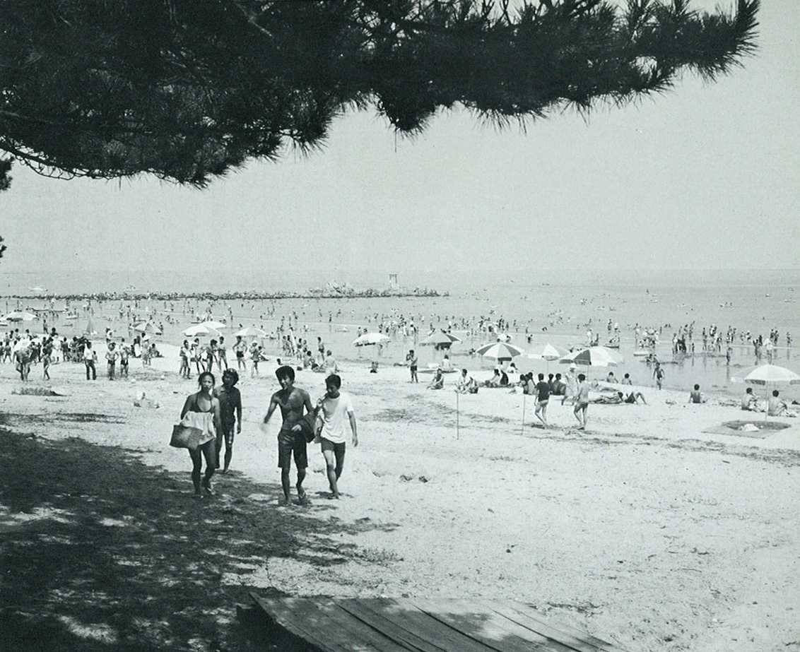 夏の奈多狩宿海岸は、澄んだ空気、砂浜に打ち寄せる波、樹齢約370年の老松の見事な枝ぶり、さらさらと足にくずれる白砂の2キロメートルにも及ぶ海岸線。当時、行楽シーズンともなると、待ちかねた若者をはじめ、県下はもちろん、北九州、熊本方面からも涼を求めて30万人近くの人びとがここに集まった。松林にはテントやビーチパラソルの花が咲き、海浜には一日中波に戯れ、砂浜に憩う家族づれの人たちの歓声があふれた。