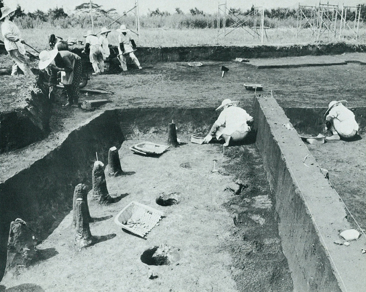当時、豊後大野市大野町にある二本木遺跡は、県道田中~緒方線の道路西側平坦地に東西80m、南北120mの範囲を発掘、予備調査をし、1976年7月~11月までの計画で本格的な発掘調査を行なっていた。この遺跡は、密度の高い弥生時代の集落の跡とみられ、当時の生活様式を知る貴重な資料が多くあった。火災にあって集落が焼けたと推定される炭化木がそのまま出ているなど、時代を超えて古代の生活を身近に感じさせてくれた。
