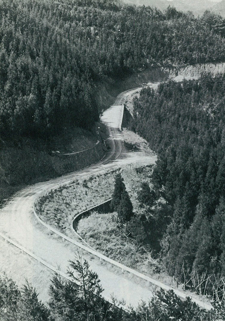 林業の振興とともに、山村の生活道路としても大きな役割を果たすと期待された林道。(昭和52年 臼杵市野津町)