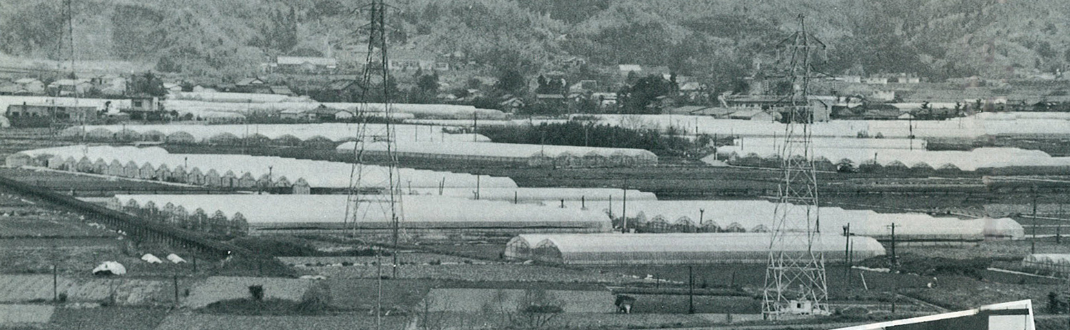 大分県では昭和52年度から、それまで以上に良質野菜の生産拡大に力を入れ、栽培ハウスの積極的な造成、生産の基礎となる土壌づくり、地域ごとに品目を決めた集団産地の育成など、流通の合理化などで強力な銘柄作りを推し進めた。写真は大分市高田地区。当時県内一の「春きゅうり」の集団産地となった。