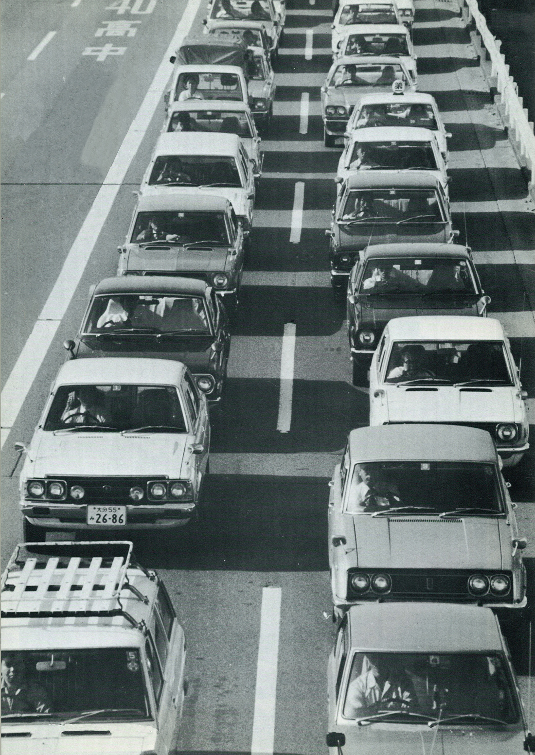 延々と続く渋滞のほとんどがマイカー。(昭和52年、210号線 南大分・大道トンネル付近)