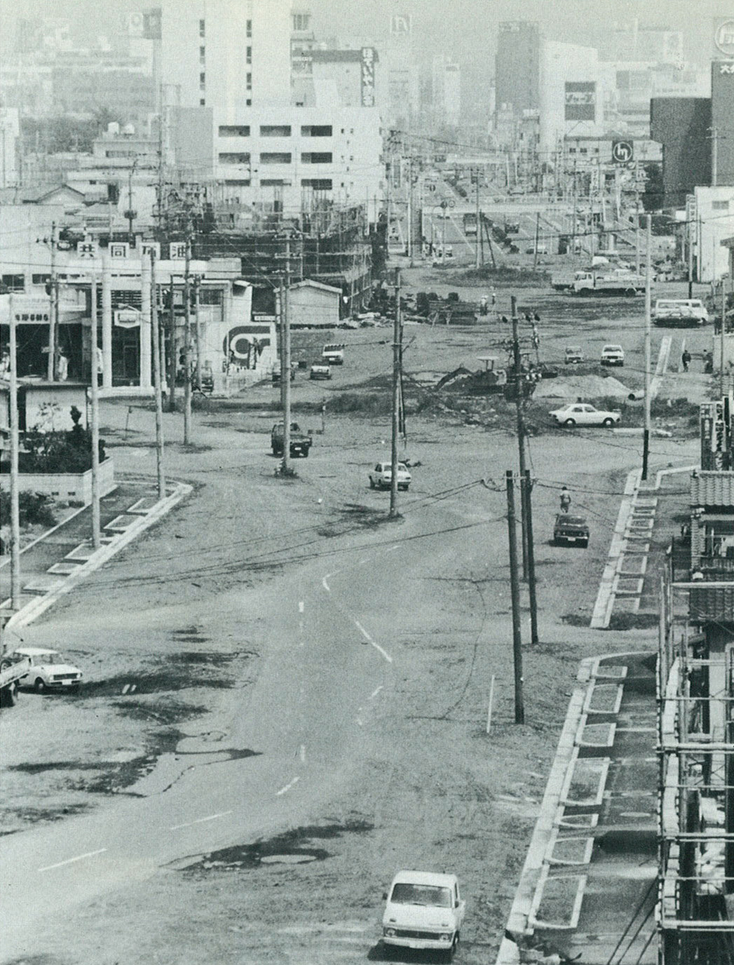 別府方面から大分市街地に進入する10号線生石バイパスの工事(昭和52年のようす)