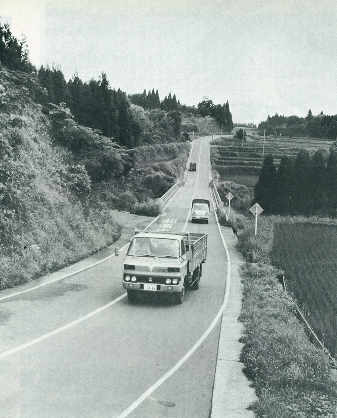 農業振興の動脈、大規模農道。(昭和52年 荻町馬場にて)