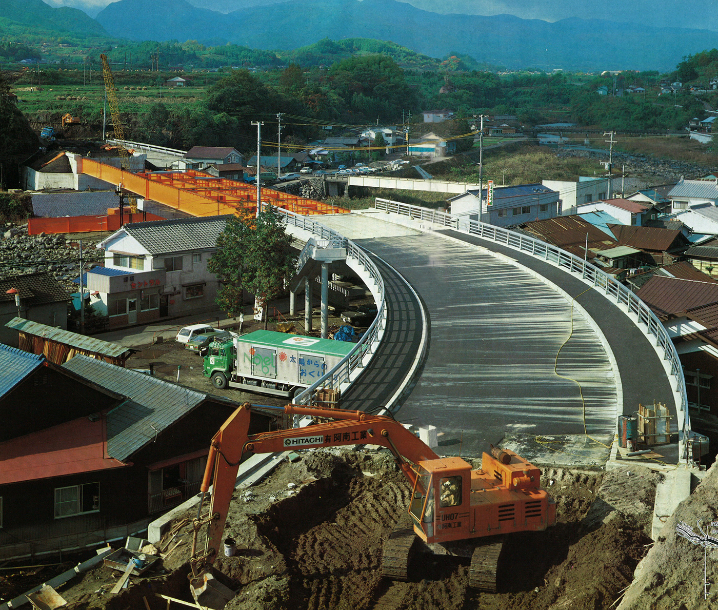 小野屋大橋は延長167m、全幅員11m(車道7m、両側に歩道が各2m)で、昭和52年度中に完成の予定だった。バイパスの延長は約7.4km。当時すでに、この橋の少し先から庄内原までの道路は舗装まで終わっており、残りの区間も53年度に完了する予定であった。総事業費は約23億円。