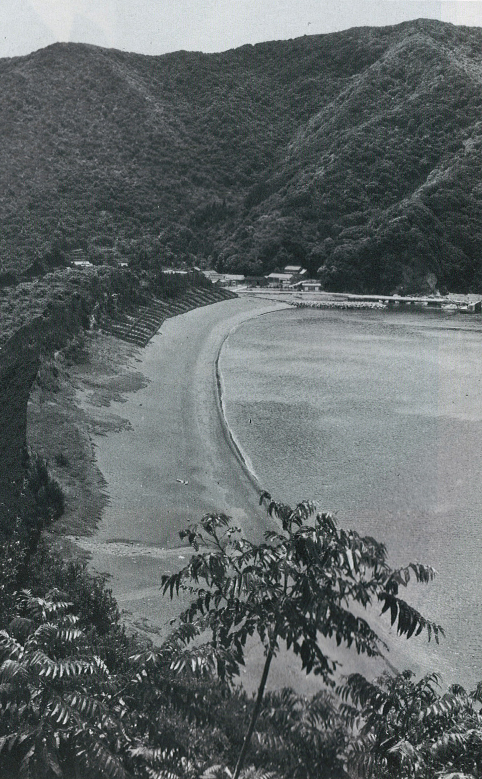 海には、サンゴが美しく広がり、浜辺にはハマユウ、ハマボウフウなどの花が咲き乱れる。松林が続く砂丘状の海岸。砂丘によってできた潟湖は魚介類が豊富。(昭和53年 佐伯市米水津間越(はさこ)にて)
