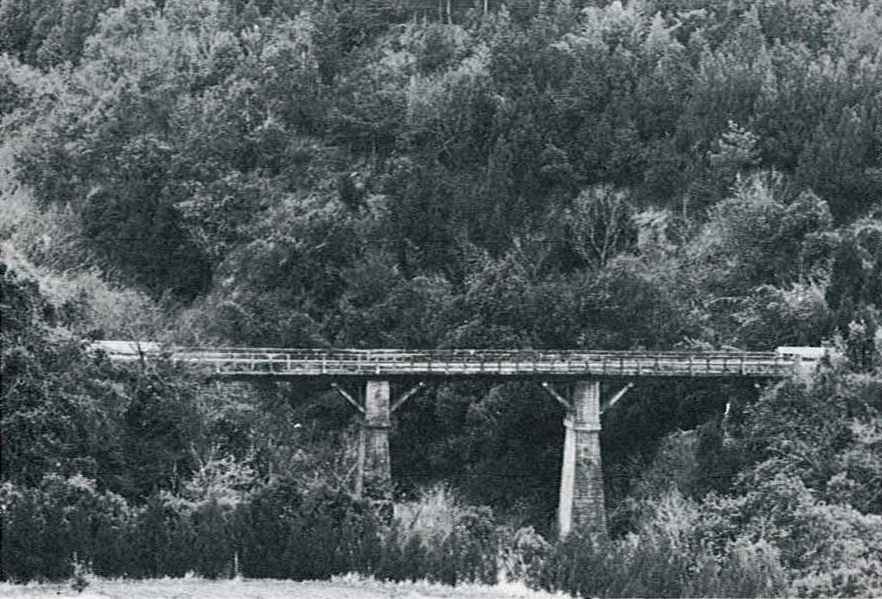 昔はどこにでも見られた木橋。水量豊かな大分県の河川のそれは切り離せない点景であった。昭和54年、耐用、安全の面からいつの間にかコンクリートの橋が幅を利かせ、数えるほどしかなくなった木橋。まもなくその命を終わらせようとしている各地の木橋を訪ねた。写真は臼杵市との境界付近にある当時の小屋川橋。