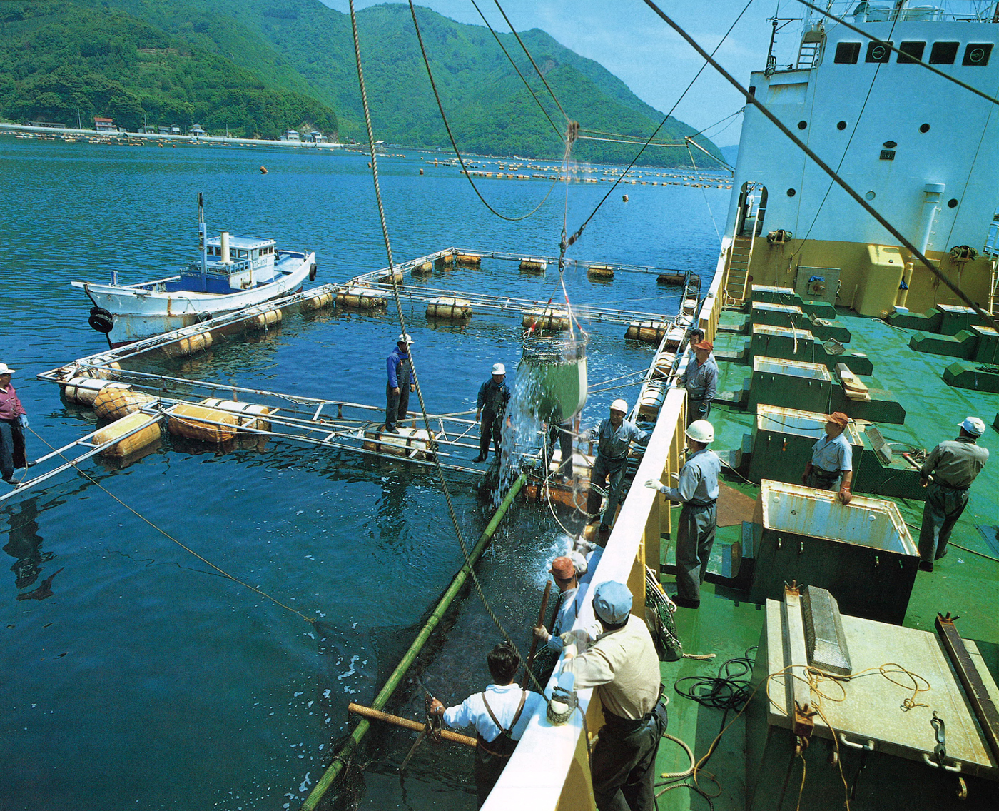 当時の米水津湾は県内有数のハマチ、マダイの養殖漁場。ハマチ養殖は昭和35年からの実績を持っていたが、マダイの本格的な養殖は昭和32年から始まった。そして34年に10万尾を出荷、昭和54年には14万尾の出荷を見込んでいた。