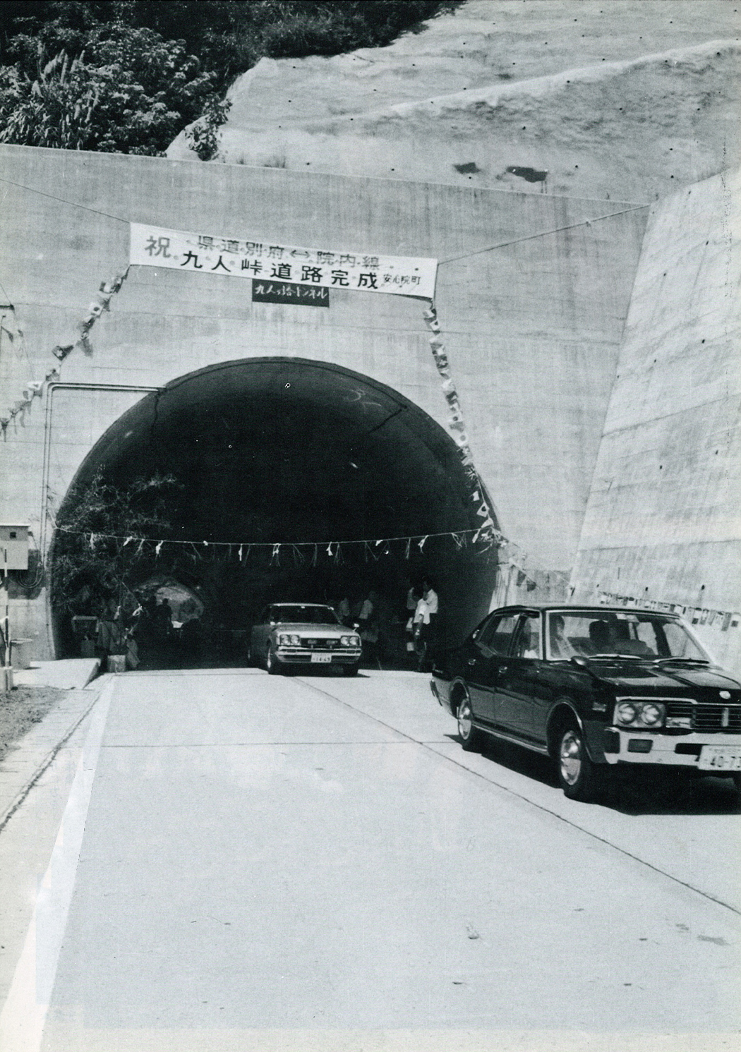 当時の宇佐市安心院町は、アフリカンサファリやぶどう狩りに県外車の往来が増え、道路整備が行われていた。昭和54年、県道別府院内線九人ヶ峠の道路改良工事が完成した。(昭和54年8月18日)
