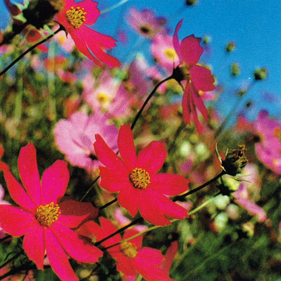 さわやかな日差しを浴びて、畑や庭のすみ、野道の端に美しくみだれ咲くコスモスは、別名アキザクラ(秋桜)とも呼ばれる秋の代表的な草花。