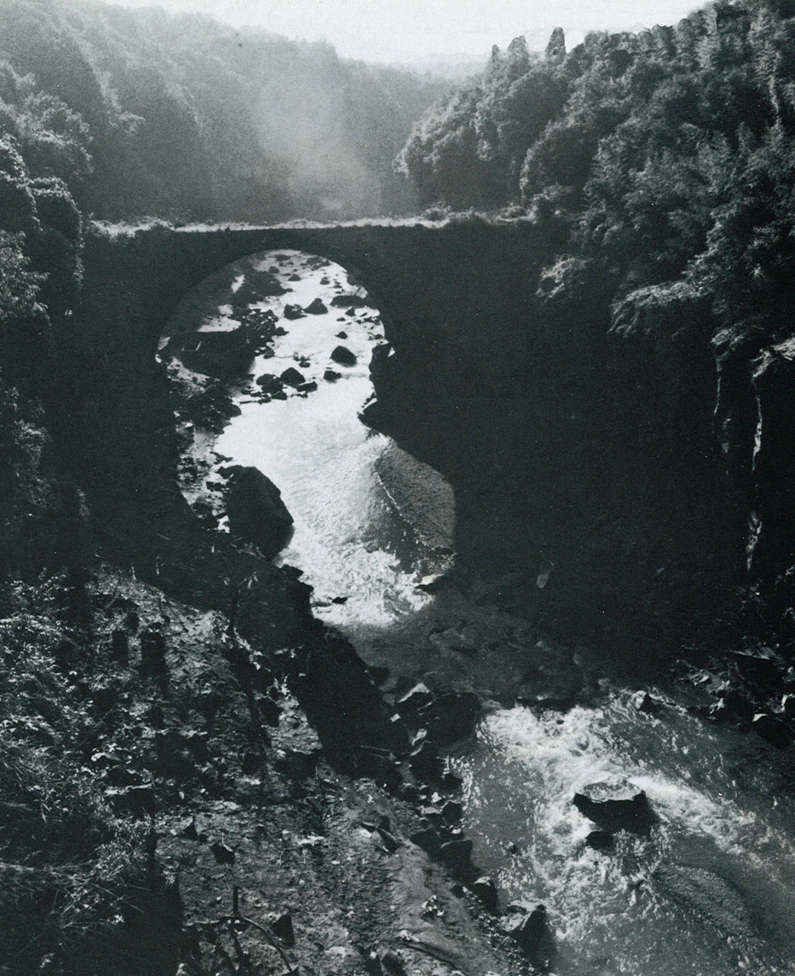 石橋は磨崖仏とならんで大分県が誇るもうひとつの石の文化財。昭和54年、いくつかの石橋が私たちの前から葬り去られようとしていた。写真は乙見ダムが建設されてからは一年のうち数か月しか姿を見せない「近戸橋」。