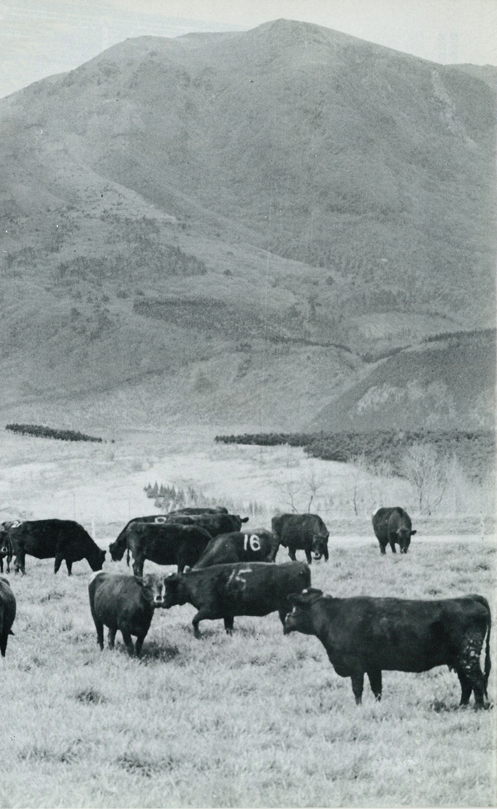 当時、大分県の肉牛は高い評価を受けながらも、出荷量とPR不足から、松坂牛や神戸牛に市場占有率が及ばず、全国的な銘柄になるまでにいたってなかった。久住、飯田を中心とする広大な草地利用で、繁殖から肥育までの地域内一貫生産を進め、上質の豊後牛を増産、市場での銘柄確立へむけて懸命の努力がなされていた。(昭和55年 久住高原にて)