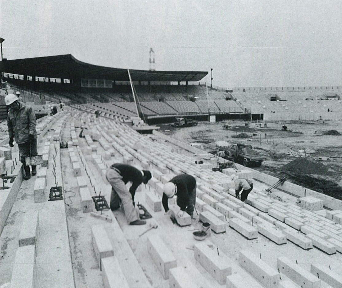 昭和55年、待望の硬式野球場が6月中旬にオープンする。(大分市・大洲運動公園)