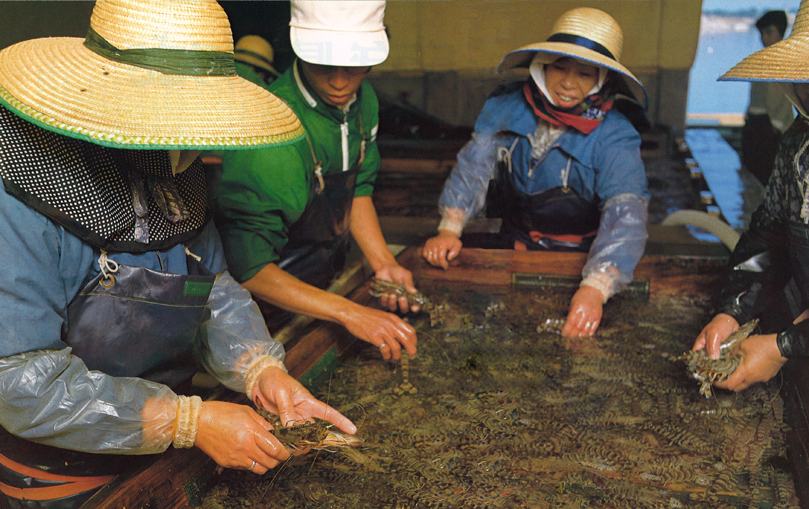 かつての塩田の跡につくられた9面のくるまえび養殖地。当時、総面積30万平方メートルの広さがあり一企業としては全国一の規模であった。村も出資をしていた「姫島くるまえび養殖株式会社」。