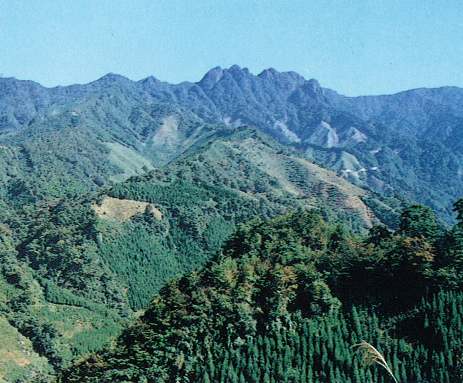 祖母山と並んで、山系の一雄であり、大分の山々の中でも、最もすばらしい岩峰、岸壁をもつ山といってよい。その岩が切り立っているため、山そのものが傾いているように見える。ここから山名が出た。かつては、奥岳川源流の山手本谷から岸壁直下にかけて見事な原生林におおわれていたが、当時、伐採が進んで、見る影もなくなった。しかし、夏と冬はクライマーのメッカとなり、春はアケボノツツジの紅、秋は岩峰に燃える夕日の茜(あかね)色が、多くの人をひきつけるようになった。