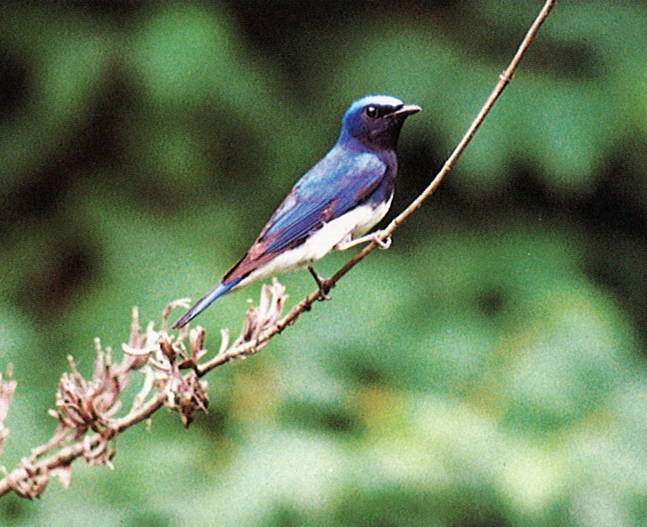 スズメより少し大きい。雄は名前のように頭から背、尾までの上面が美しい瑠璃色で見分けやすい鳥である。雌は上面が褐色、下面は淡い黄褐色で目立たない地味な色をしている。さえずりは、澄んだ音色で『ホイヒーピピ、ヒーリーリー、ジジッ』など複雑な節回しと美しい声である。姿も声も美しい日本の三鳴鳥(銘鳥)の一つとされている。夏鳥として、九州以北の特に渓流沿いの林などに渡来して生息する。県内では、各地の渓流沿いの山地でみられ、樹冠などでさかんにさえずる姿をよくみかける。