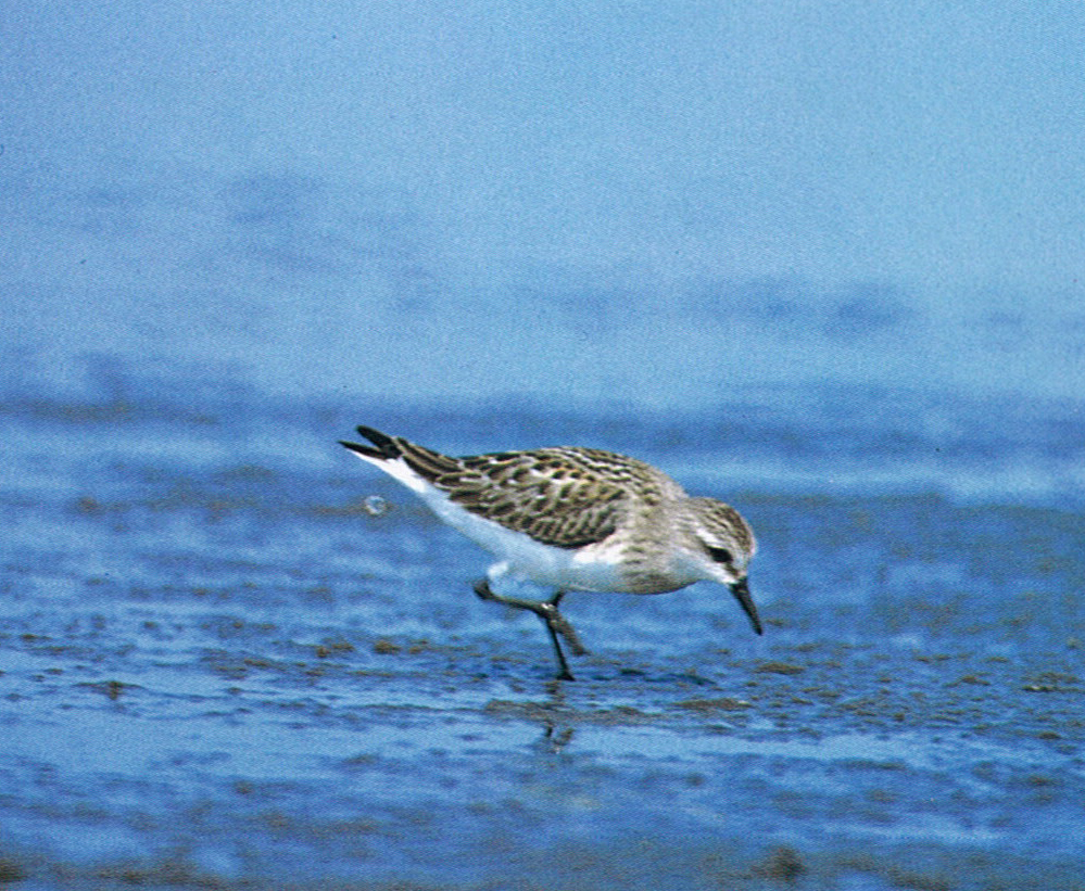 当年子と世慣れるように、シギ科では最も小型でスズメくらいの大きさである。夏羽では頭と上面が赤褐色だが、見ることはまれである。くちばしは比較的太く、足は黒い。飛ぶと翼に白線が出て、尾の両側が白っぽく中央は黒い。よく見かける冬羽では背面が灰褐色で、顔から胸、腹は白く、夏冬とも白いまゆ線がある。日本では渡りの時に海岸や河口の干潟、湿地に、他のシギに混じって姿を見せる。県内では各地の干潟で普通に見られる。泣き声は虫のような細い声で「チュリッ、チュリッ」と鳴く。
