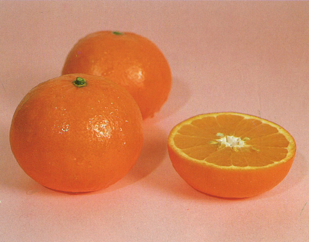サンクイーンは米国フロリダ州で生まれた品種「セミノール」の銘柄名。昭和49年に津久見市がうんしゅうみかんに替わる高級晩柑類として導入した。果皮は鮮やかな赤橙色で薄く、香気がある。果肉は橙色、果汁が多い。昭和58年は約1000tを収穫。