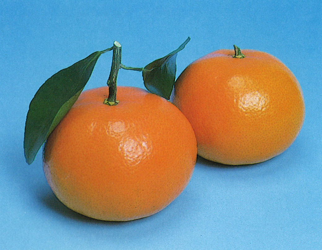 県内産高級晩柑類のマーコット。アメリカ・フロリダ原産のタンゴール類(ミカン類とオレンジ類の雑種柑橘)で昭和55年に穂木を導入。58年春から出荷された。果実は橙色、赤味を帯び、光沢があり美しい。糖度が高く多汁、風味も濃厚である。産地は杵築が中心。