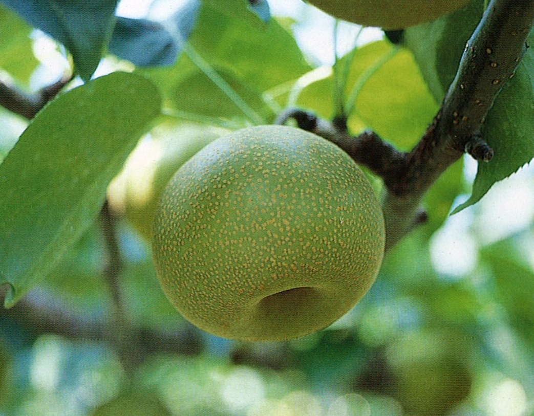 残暑がようやく終わる頃に甘味と大きさを増すナシ。真っ白な果肉とサクサクとした歯ざわりが、秋の訪れを感じさせる。当時、県内で栽培されていた品種は約10種で、20世紀、三水(新水・幸水・豊水)、菊水、新高。主に日田市、九重町、由布市などで栽培されています。