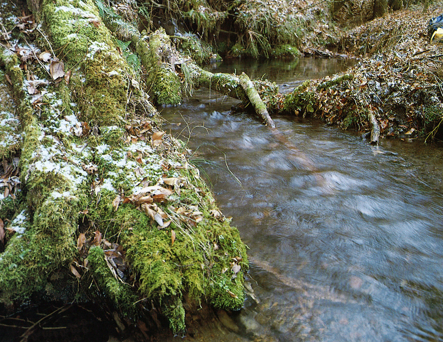 環境庁「名水百選」のなかの大分3名水の1つ。黒岳北麓の原生林に囲まれた男池の豊かな湧水が、苔むした巨木の根を洗い、大樹の影を映しながら流れていく。この流れは、やがて阿蘇野川となって大分川に注ぐ。