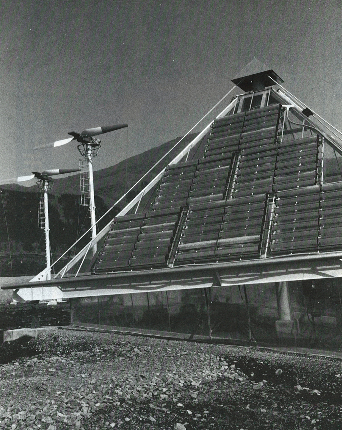 ここでは九州初の試みとして、風と太陽の自然エネルギーを利用し、コンピュータと水気耕栽培で環境をコントロールしながらトマトなどを栽培した。