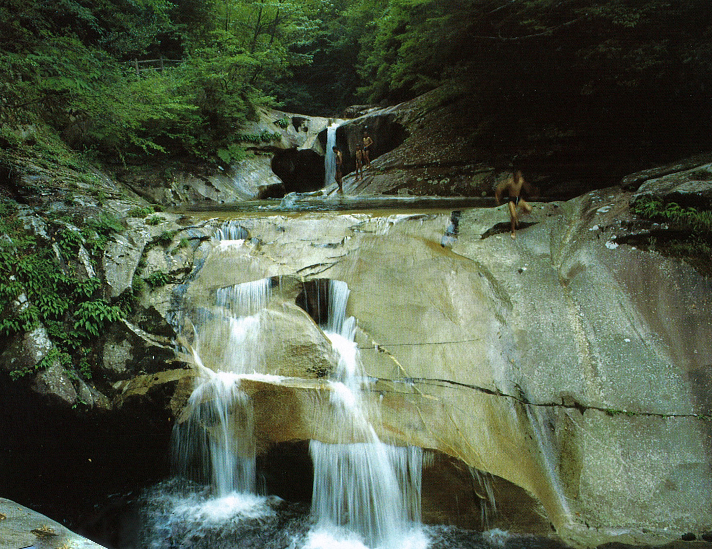 祖母・傾山系の夏木山を源流とする藤河内渓谷。渓谷の長さは約8キロ。急傾斜で変化の多い屈曲、1枚岩の花こう岩でできたなめらかな岩床、そして渓床にある大小無数のおう穴群が、上流型渓谷の美を誇っている。