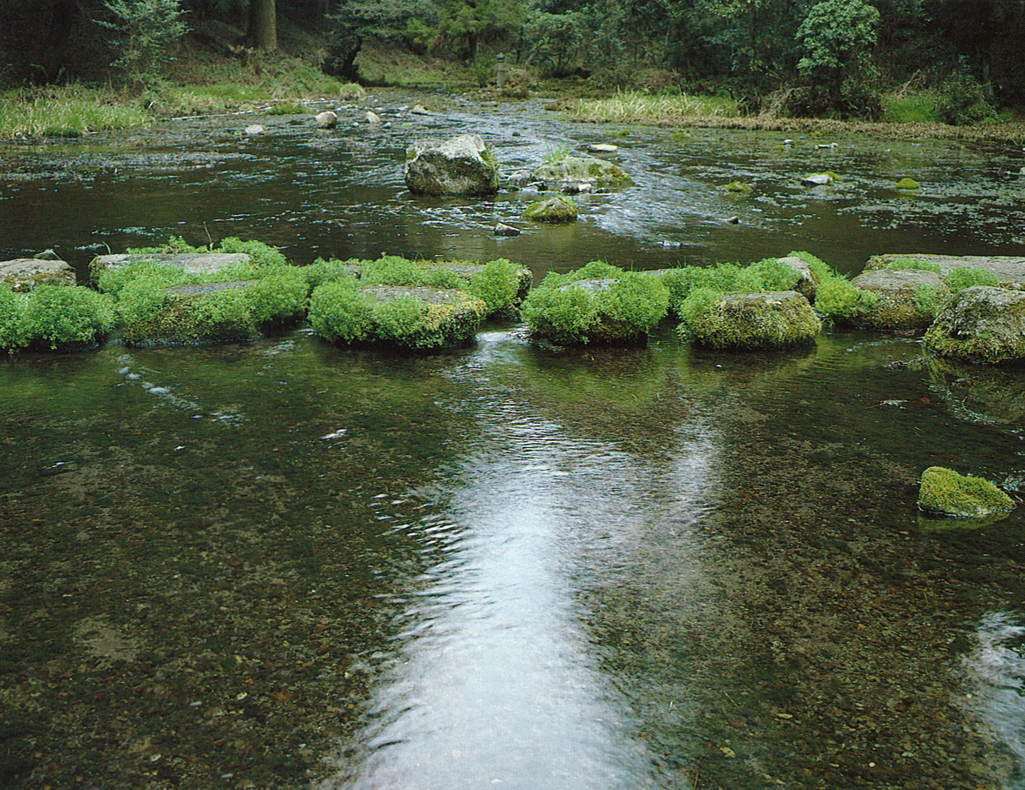 天然の日本庭園の風情をもつ納池公園。元徳2年(1330年)、当時の白丹南山城主・志賀義天の遊楽地とされたことでも知られる。こんこんと湧き出て流れる清水、水面に影を映す老杉に、昔の面影がしのばれる。