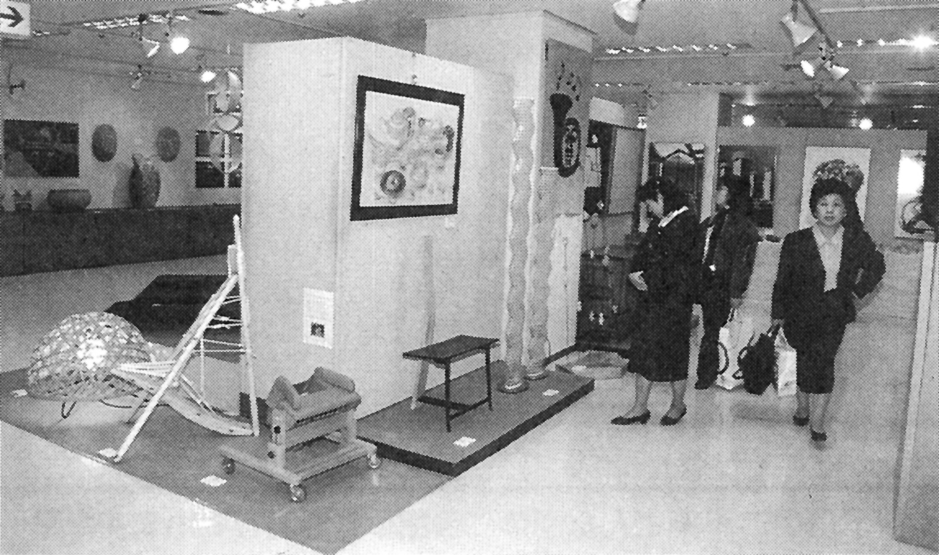 平成3年、第2回デザインウェイブ・おおいたが3月14日から6日間、大分市トキハ会館で開かれた。県と県デザイン振興協議会が開いており「デザイン新作展」「県デザイン振興協議会会員展」「現代日本のグラフィクデザイン展」の3部構成のイベントであった。“一村一品”と“空間”が課題のテーマの「デザイン新作展」には参考出品を含めて65点が出品された。
