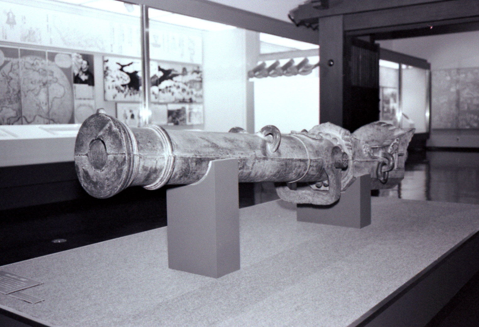大友砲(靖国神社参道脇にある。大分市歴史民俗資料館レプリカ)。臼杵丹生島城に在ったものを、薩州軍が奪取したものと説明するが、薩軍は国崩し(大友砲)で撃退されており、同城も陥落していなかったので、真偽のほどは定かではない。おそらく、日向出兵の時、宗麟が延岡に携行したものを放置して帰国したので、この時のものと推定される。