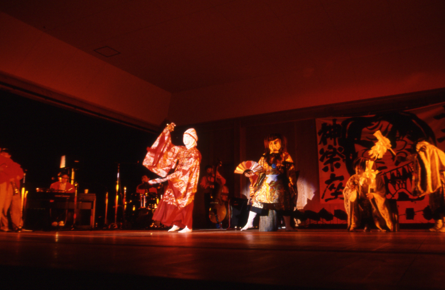 由布市庄内町に伝わる庄内神楽は、里神楽(庶民の神楽)を古くから伝承していると言われている。当時、地域資源を生かした心豊かな活力あるまちづくりを進めていた由布市庄内町では、平成2年度に、ふるさと創生事業で多目的野外ステージ「神楽殿」を建設。11月3日の文化の日には「庄内神楽まつり」を開催した。写真は当時開催された『ミステリアス・ライブ・イン・庄内郷』のようす。