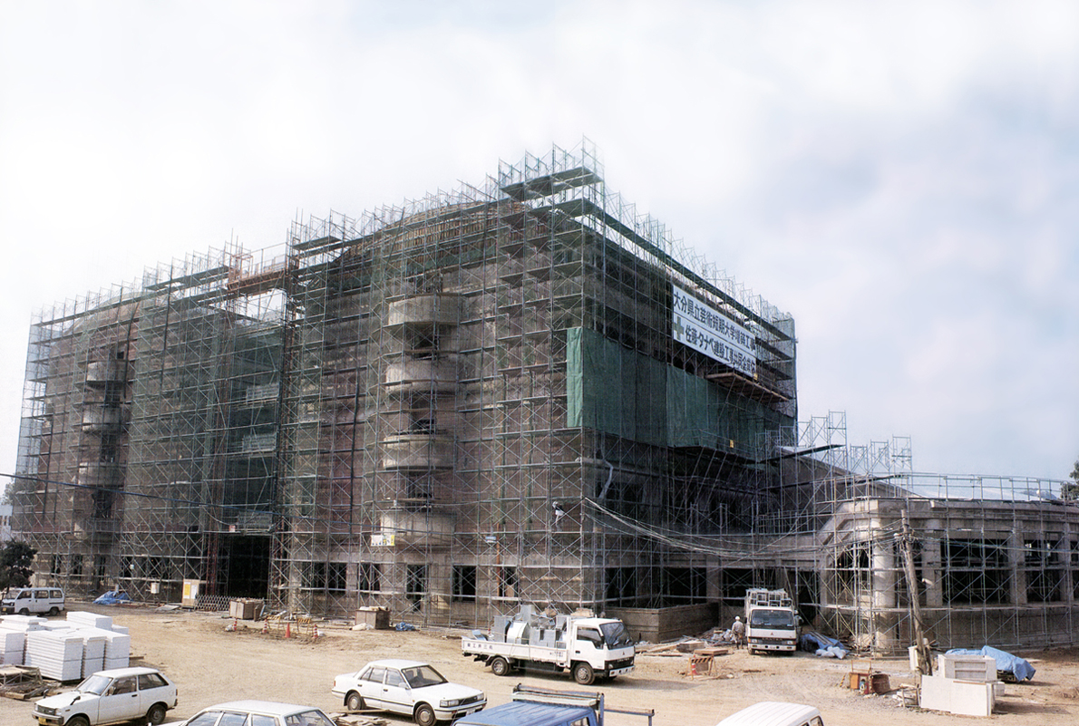 当時、県立芸術短期大学は、平成4年4月の新たな学科開設を目指して「国際文化学科」と「コミュニケーション学科」を文部省に申請した。開設されれば、公立の短期大学では全国で初めての学科となるものであった。写真は平成4年4月の開設を目指し、急ピッチで新学科棟の建設が進む県立芸術短期大学。