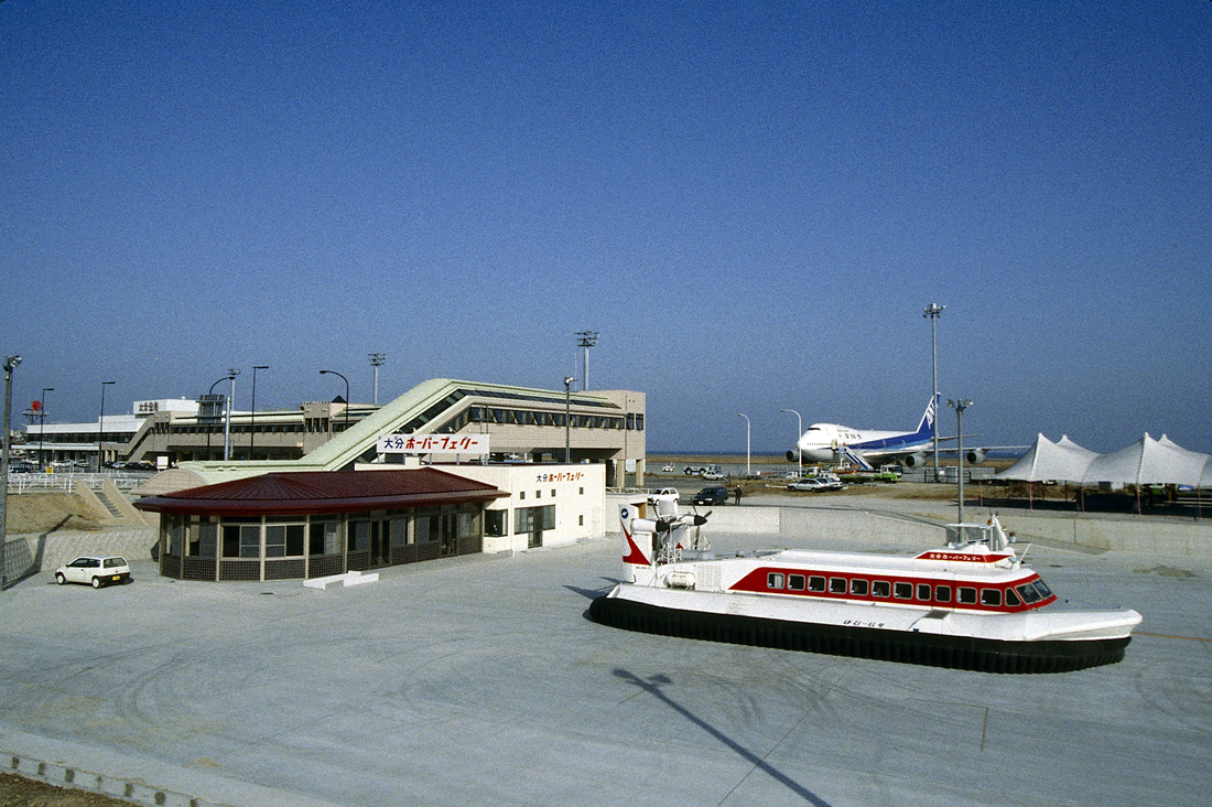 平成3年10月に、開港20周年を迎えた大分空港。同年11月25日の空港道路開通に続き、12月4日には空港ターミナル地域整備事業も完成した。ホーバークラフトの空港内直接乗り入れなどにより、空港アクセスは大幅に改善された。