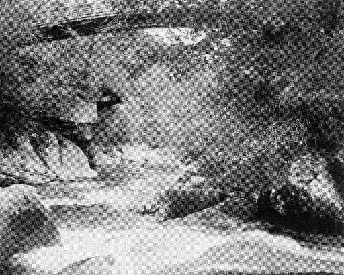 両側が花崗岩で形成され大小無数の甌穴群が続く。